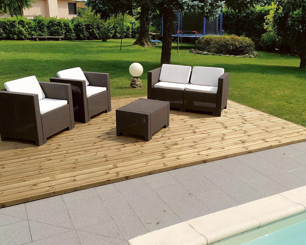 Offrendo una vasta gamma di legno per giardino, profili in legno lamellare, pavimentazioni esterne, rivestimenti facciate, pergole e arredi da giardino come tavoli, panche o frangivento in larice alpino o pino impregnato, il marchio è il compagno di lavoro ideale sia per il fai da te che per cantieri di piccole dimensioni.