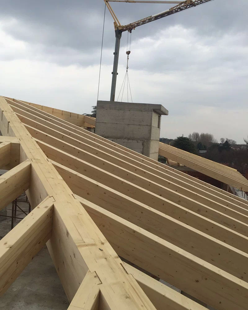 Siamo in grado di fornire ai nostri clienti tetti in abete lamellare, pretagliati o in semplice appoggio, consegnando sempre la certificazione del materiale impiegato.